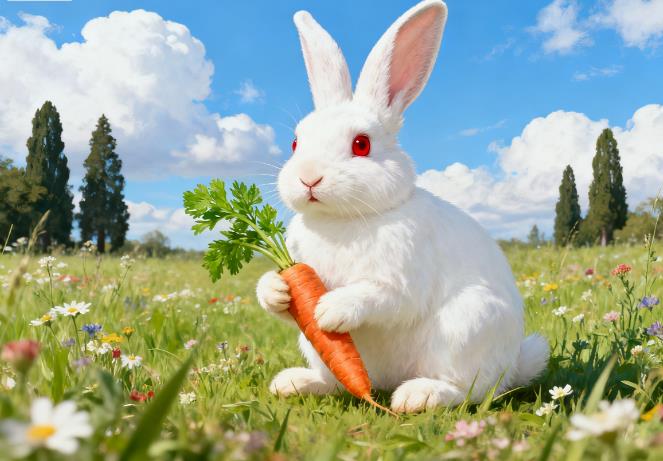 动态敏捷:野兔的逃生速度可达每小时72公里,后腿发力时如“电光火石”,瞬间消失于草丛中,古人常以“脱兔”形容兵贵神速,与“疾如奔雷”异曲同工。 静态美感:白兔的毛发柔软如丝,尤其长毛兔的绒毛可与“白练带”媲美,唐代诗人王建曾写“新秋白兔大于拳”,凸显其洁白特质。 文化寓意:在神话中,玉兔捣药的形象进一步强化了其与“山禽”(仙境)的关联。